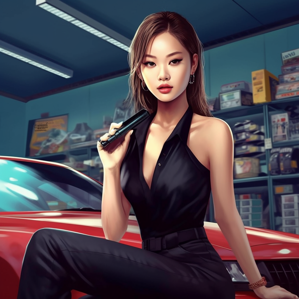 https://s.mj.run/jZJ51bZiCEw beautiful stylish theft woman, car repair shop background, gta style, --iw 1.1