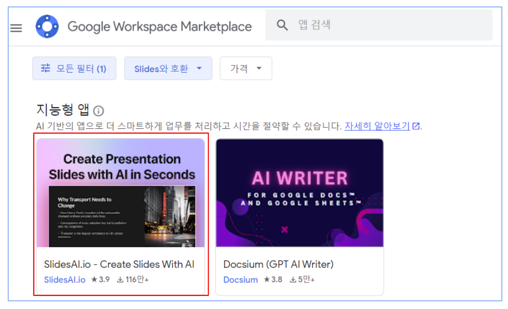 2) 마켓플레이스에서 SlideAI를 검색하고 설치합니다.