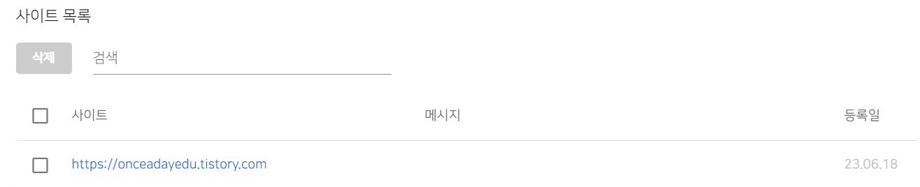 HTML 적용을 완료하였으면, 다시 네이버 웹마스터로 돌아가서 소유권 확인을 선택합니다. 그러면 다음과 같이 블로그가 등록된 것을 확인하실 수 있습니다.