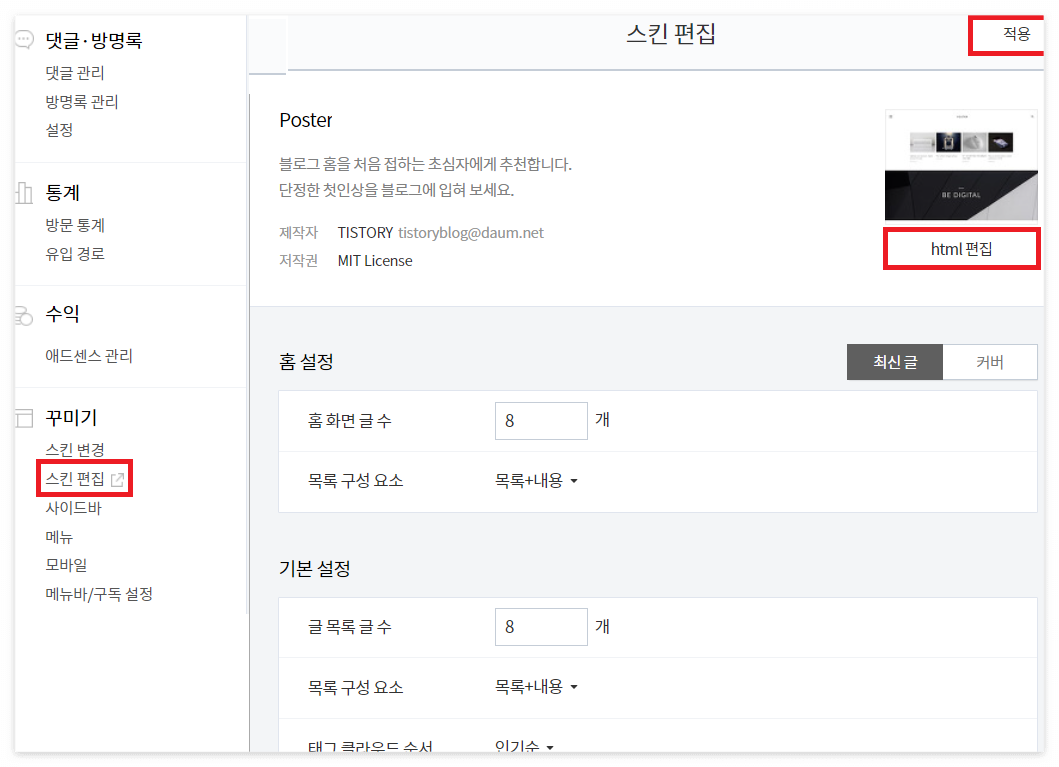 3. HTML 티스토리 홈페이지에 입력