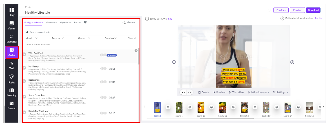 5) 배경 음악을 설정해줍니다. 15000곡 이상의 다양한 배경음악을 제공해줍니다.
