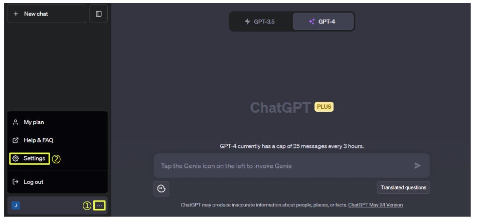 1) 챗GPT 오른쪽 아래 본인 아이디 옆에 "⋯" 를 선택합니다. 다음 Settings를 선택합니다.