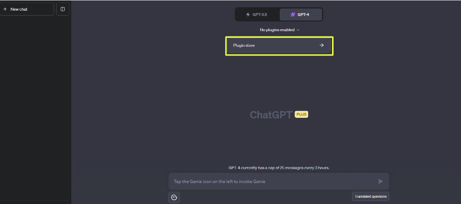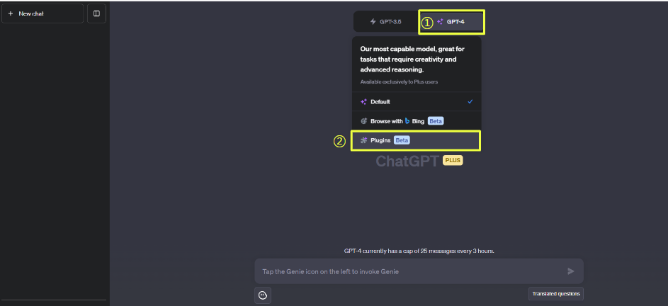 2) 챗GPT 메인화면에서 상단의 GPT4 선택을 하시고, Plugins를 선택합니다.