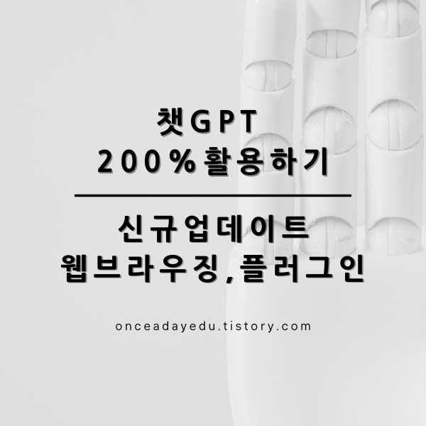 챗GPT가 신규 업데이트가 되었습니다. 신규 업데이트 된 기능은 웹브라우징, 플러그인 사용, 여행 예약입니다. GPT-4는 2021년 9월까지 학습데이터로 응답을 수행하므로, 최신 정보에 약하다는 단점이 있었습니다. 이번 신규 업데이트 기능인 웹브라우징 기능을 통해 단점을 보완할 수 있게 되었습니다. 또한 플러그인 기능을 통해서 현재 600여개의 플러그인을 사용하실 수 있으며, 앞으로는 다양한 서비스를 이용할 수 있게 되었습니다. 신규 업데이트 기능은 현재 유료 가입자만 사용할 수 있으니 참고하시기 바랍니다. 이번 포스팅에서는 챗 GPT 신규 업데이트 기능 및 사용법에 대해 알아보도록 하겠습니다. 아래는 짧은 설명 영상입니다. 참고 부탁드립니다.