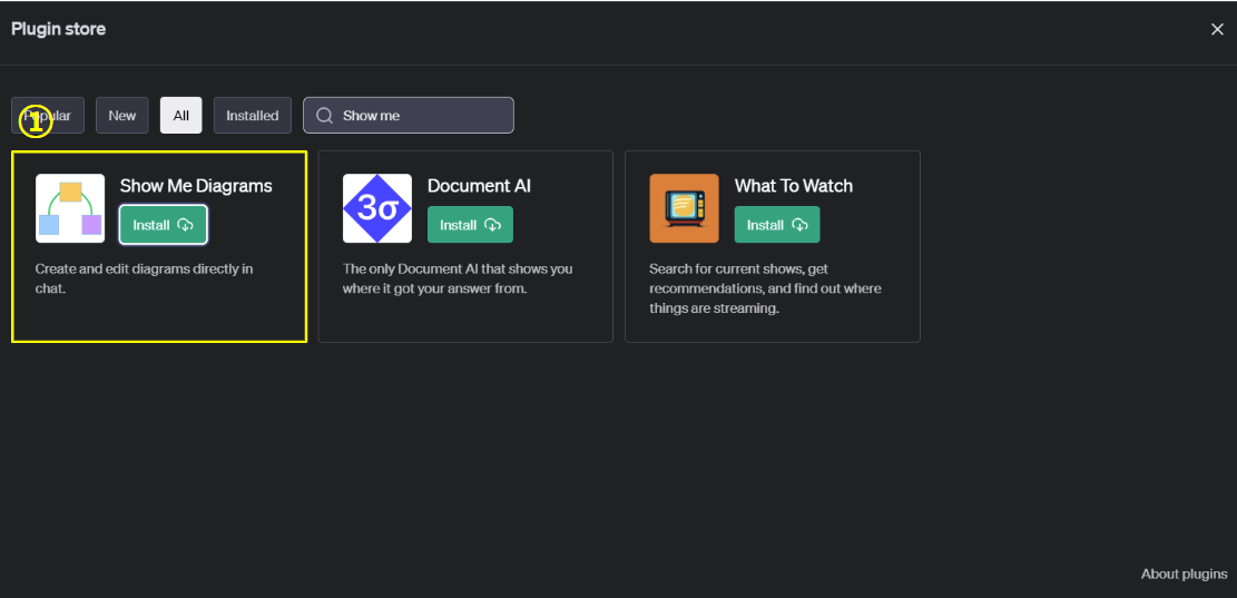 다음 플러그인 스토어에서 'Show me diagram'을 검색하고 설치합니다.