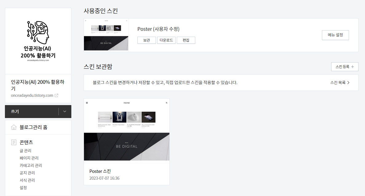 2. 티스토리 스킨 변경